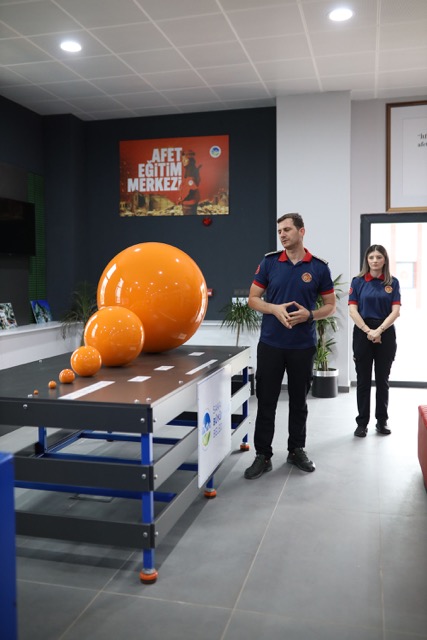 Katılımcılar, program kapsamında deprem bilincinin artırılması amacıyla simülasyon uygulamalarına katıldı. Güneşler Afet Eğitim Merkezi’nde yer alan deprem ve dumanlı kaçış simülasyonları ile afet ortamlarına karşı farkındalık geliştirildi.