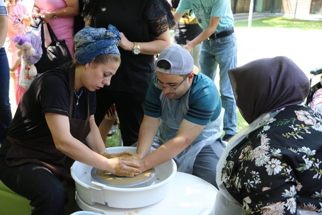 SGM bahçesinde gerçekleştirilen etkinlikte, özel gereksinimli bireyler ve anneleri bir araya geldi. Uzman eğitmenler eşliğinde düzenlenen seramik çömlek yapımı, waffle, tezhip ve el sanatları atölyelerinde hem eğlenceli hem de üretken saatler geçirildi.